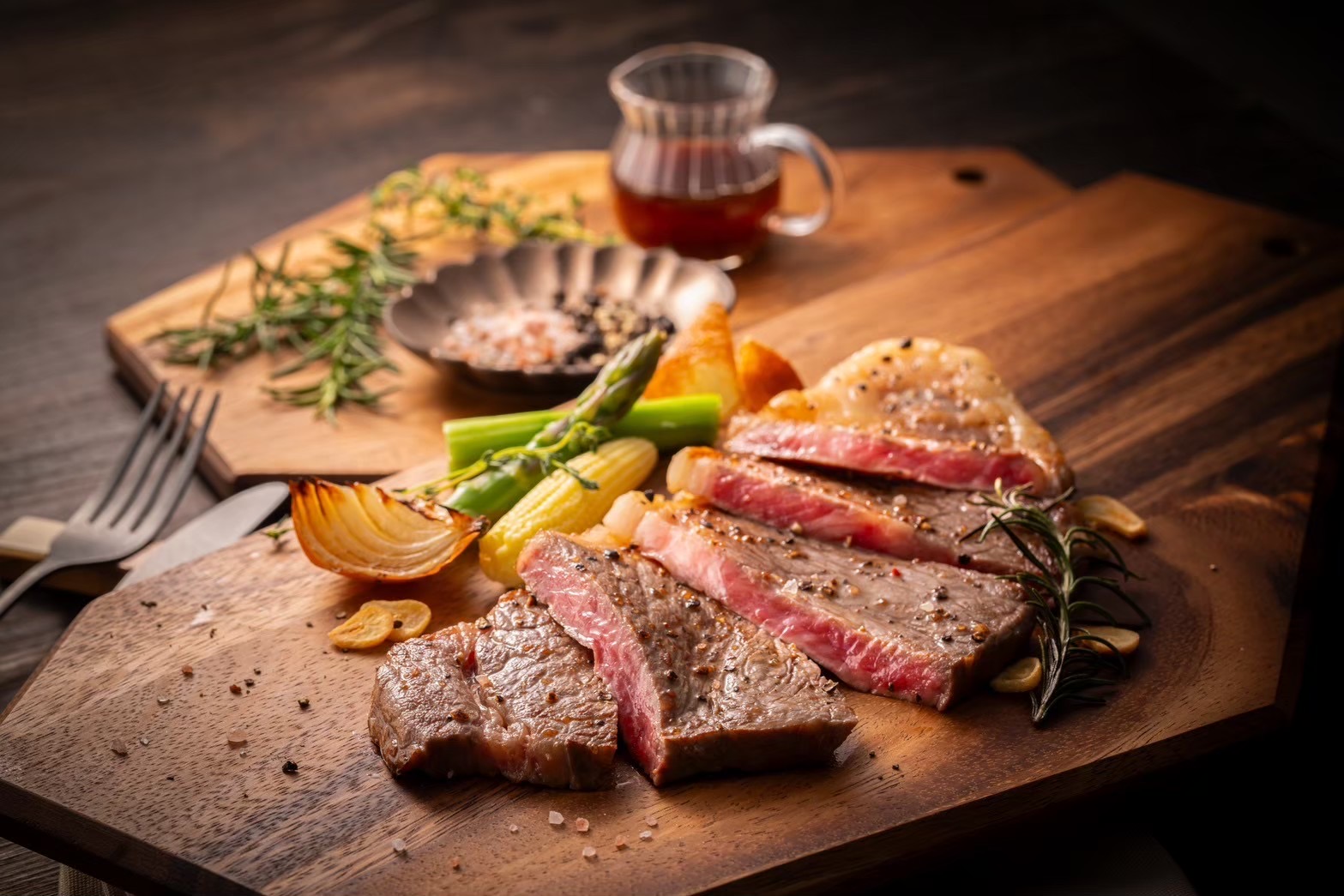 サーロインは適度なサシが入ったジューシーで柔らかい部位です。脂の甘み、お肉の旨みの両方が味わえるサーロインを贅沢にステーキです。程よい霜降りのお肉がとろける至福のひと時をお楽しみください。